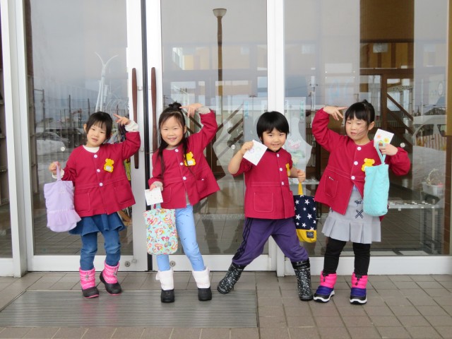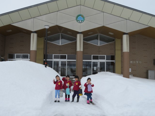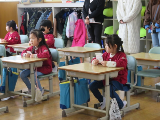瑞穂小学校に就学予定の幼児と児童との交流会が2月4日に行われ、きりんさんの子どもたちは園バスに乗り出掛けてきました。みんな楽しみにしての参加だったので、1年生との交流も張りきって参加していました。学校では「どんなことをするのかな?どんな場所があるのかな?・・・」を教えてもらったり、ゲームを一緒に楽しんだり、学校内を探検したり・・楽しく過ごすことができました。子どもたちは、「1年生からお土産もらったよー」と、嬉しそうに教えていましたよ。ありがとうございました(*- -)(*_ _)