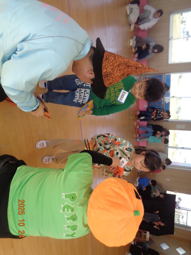 英語教室の参観日は、子どもたちも保護者の方も楽しみにしていたみたいですね。みんなの大好きな「ハロウィン」の内容で、お家の人とも一緒に触れあったり、カボチャの顔を描いたり楽しかったね。